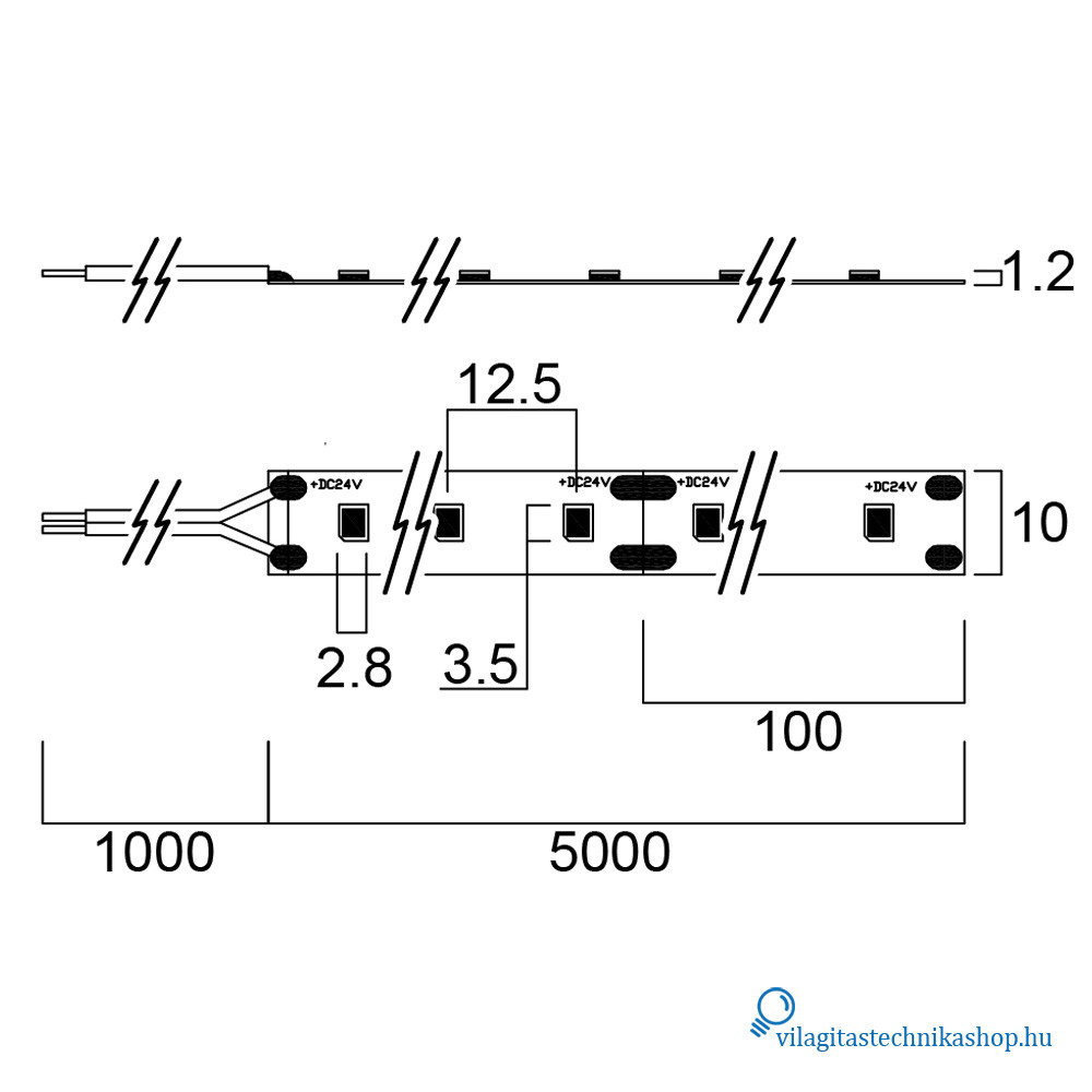 Összesen 400 LED-del szerelt, fényárama 9000 lumen / 5 m, azaz 1800 lumen / méter.