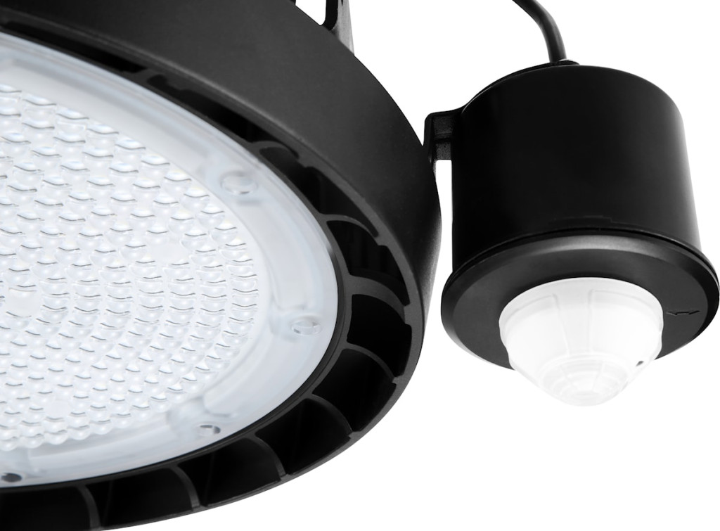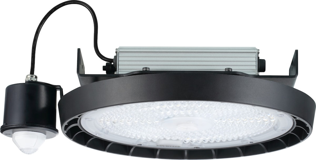 Integrált LED high-bay csarnokvilágító fekete alumínium házzal.