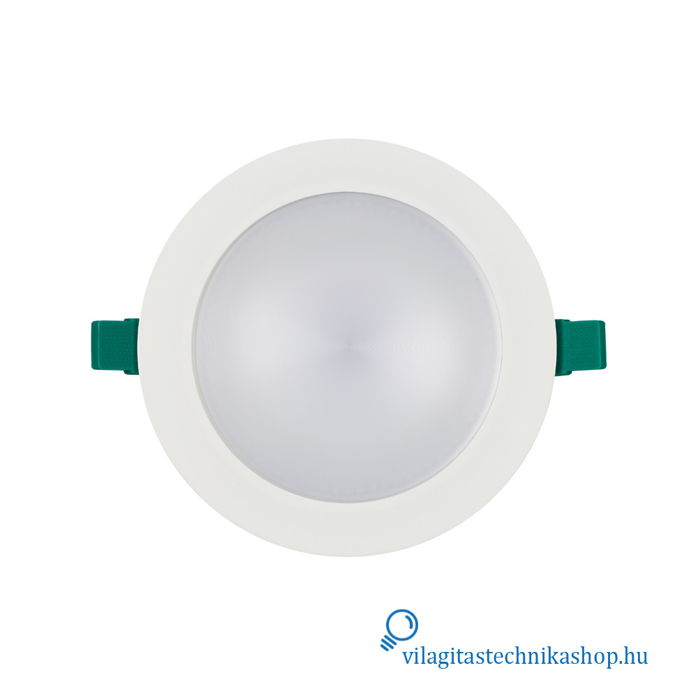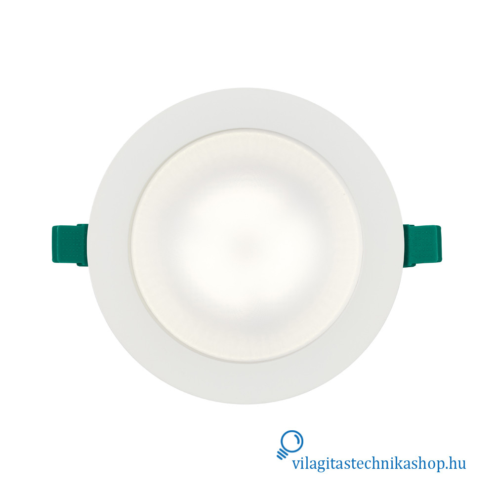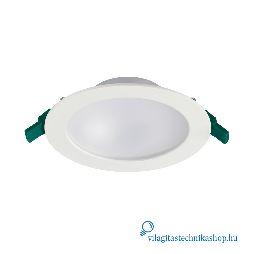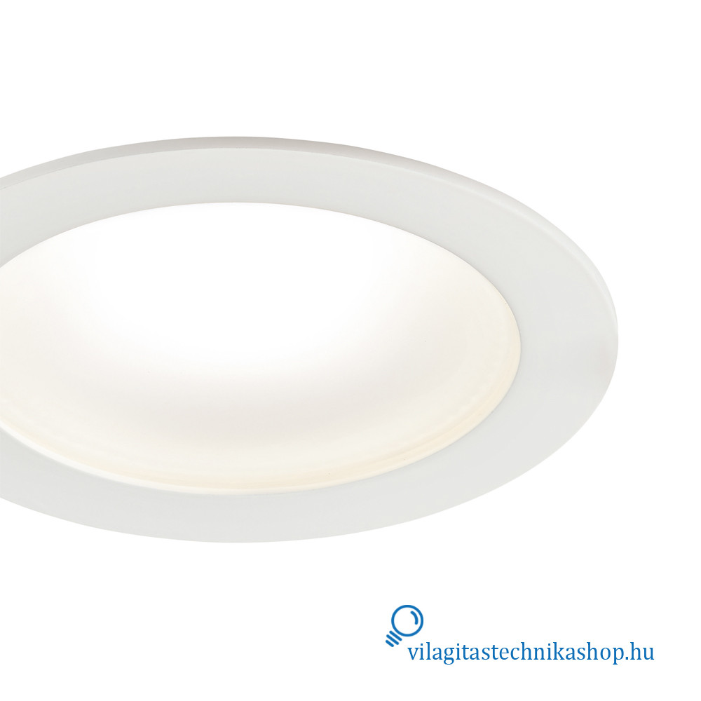 Süllyesztett mennyezeti LED downlight, IP54 védettséggel elölről nézve, ideális olyan helyekre, ahol korlátozott mennyezeti beépítési mélység áll rendelkezésre, hiszen a termék mélysége mindössze 60 mm, kivágási mérete pedig 205 mm. Kiváló alternatívája az 1x42 W-os kompakt fénycsöves downlightoknak.