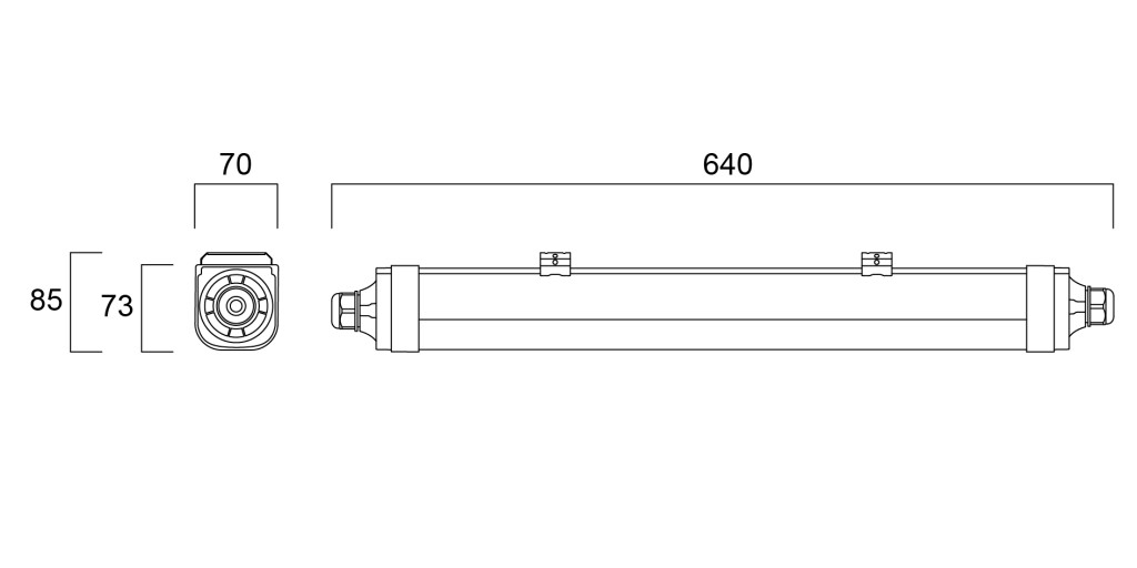 Méret: 640 × 70 × 73 mm