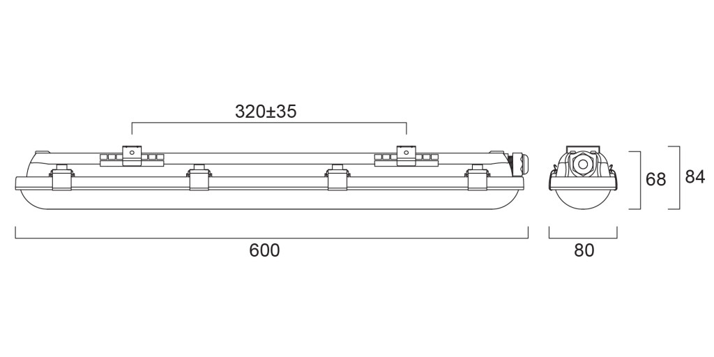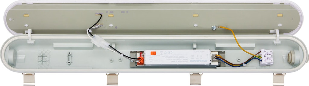 A Start eco Waterproof maximális teljesítményt és tartósságot kínál olyan felhasználási területeken, mint a parkolók, raktárak vagy műhelyek. A 600 mm-es, robusztus kialakítású lámpatest IK08 ütésállósággal és IP65 vízálló védelemmel rendelkezik, szimmetrikus, széles sugárzási szöggel.