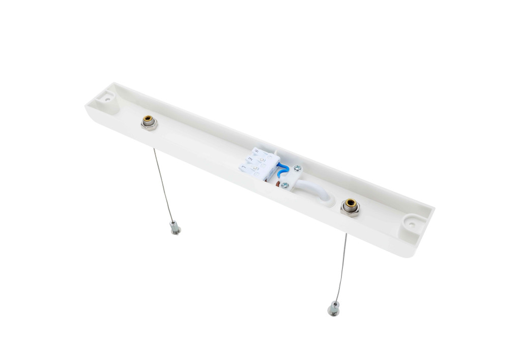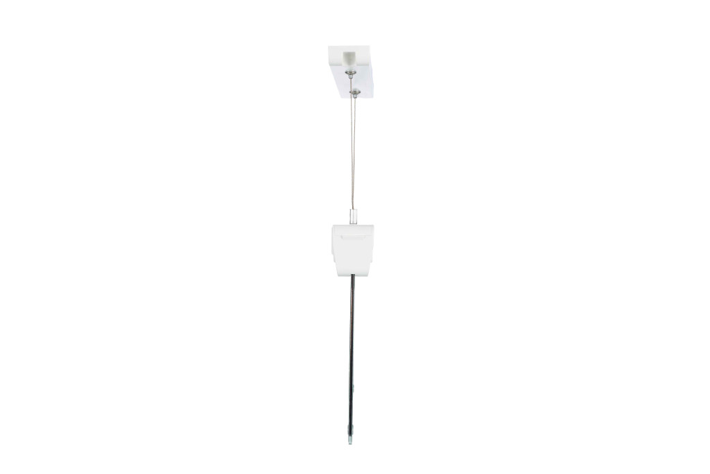 • Fehér polikarbonát mennyezeti függesztő szerelőkészlet 1 méteres, állítható acél sodronnyal