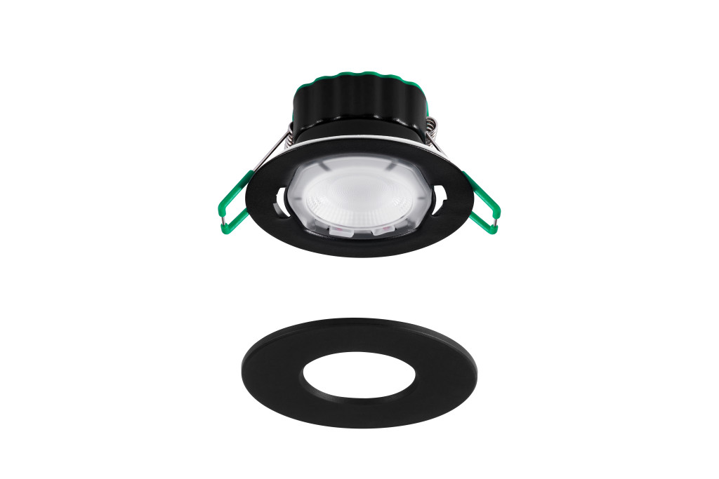 Az OBICO 65-72 FIX BEZEL BLACK egy fekete dekorgyűrű tartozék a 0059832 cikkszámú OBICO 65-72 IP65 FIRE 525-850 lm 4CCT DIM FIX WHITE termékhez