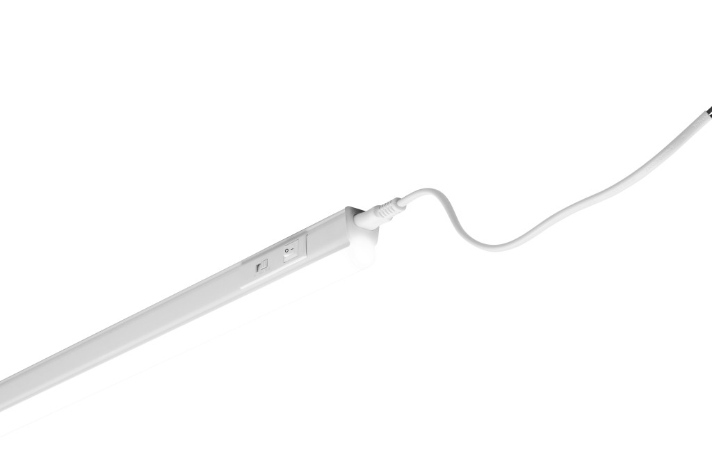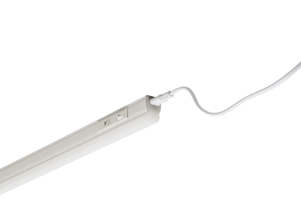 LED T5 pultvilágító lámpatest nagy fényáramú kivitelben, akár 140 lm/W hatékonysággal, hézagmentesen sorolható kivitelben (akár 10 m-ig), közvetlen világításra – például konyhapult alá vagy munkafelületek fölé – ideális, 120°-os sugárzási szöggel, be-/kikapcsolóval és kapcsolható színhőmérséklettel (melegfehér / hidegfehér / nappali fény: 3000 K / 4000 K / 6500 K), 0,30 m-es blankolt kábellel, fehér polikarbonát házzal, valamint standard és billenthető rögzítőkkel