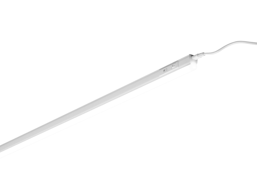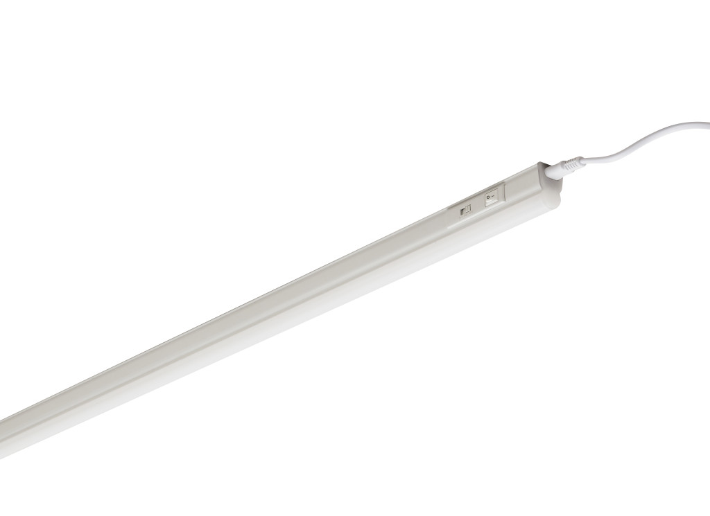 LED T5 pultvilágító lámpatest nagy fényáramú kivitelben, akár 140 lm/W hatékonysággal, hézagmentesen sorolható kivitelben (akár 10 m-ig), közvetlen világításra – például konyhapult alá vagy munkafelületek fölé – ideális, 120°-os sugárzási szöggel, be-/kikapcsolóval és kapcsolható színhőmérséklettel (melegfehér / hidegfehér / nappali fény: 3000 K / 4000 K / 6500 K), 0,30 m-es blankolt kábellel, fehér polikarbonát házzal, valamint standard és billenthető rögzítőkkel