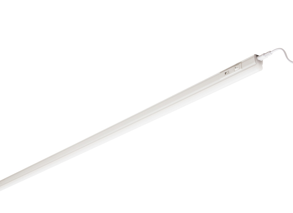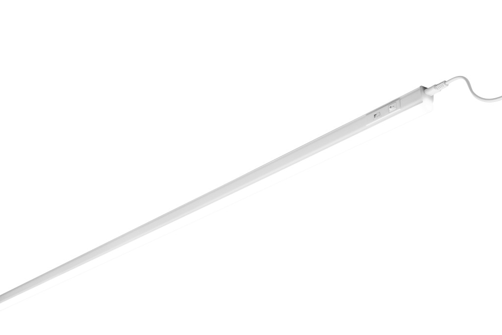 LED T5 pultvilágító lámpatest nagy fényáramú kivitelben, akár 140 lm/W hatékonysággal, hézagmentesen sorolható kivitelben (akár 10 m-ig), közvetlen világításra – például konyhapult alá vagy munkafelületek fölé – ideális, 120°-os sugárzási szöggel, be-/kikapcsolóval és kapcsolható színhőmérséklettel (melegfehér / hidegfehér / nappali fény: 3000 K / 4000 K / 6500 K), 0,30 m-es blankolt kábellel, fehér polikarbonát házzal, valamint standard és billenthető rögzítőkkel